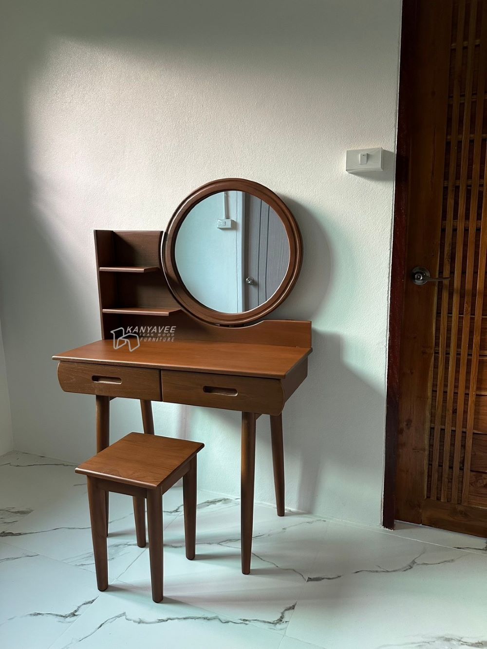โต๊ะเครื่องแป้งมินิมอลไม้สักสีมูจิ